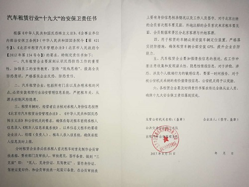2017年09月13日最新消息:汽車(chē)租賃行業(yè)“十九大”治安保衛(wèi)責(zé)任書(shū)?